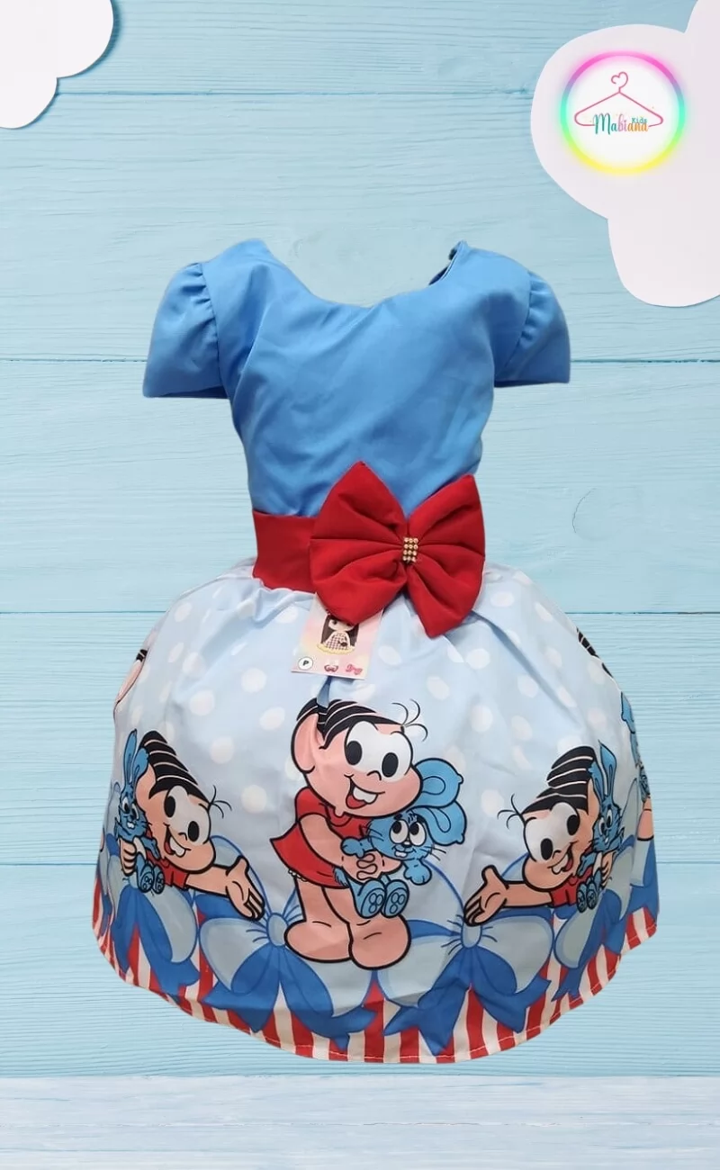 Vestido Infantil Tema Mônica | Fantasia Colorida e Divertida – Mabiana Kids