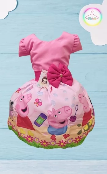 Todos os vestidos possuem uma camada de tule para dar volume na saia, tem elastex nas costas para ajustar ao corpinho da criança e um lindo laço nas costas.
