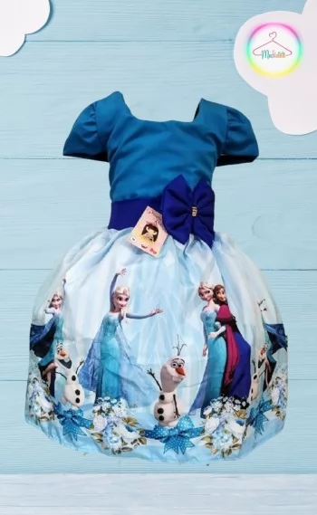 Vestido Infantil tema Princesa Gelo Laço
