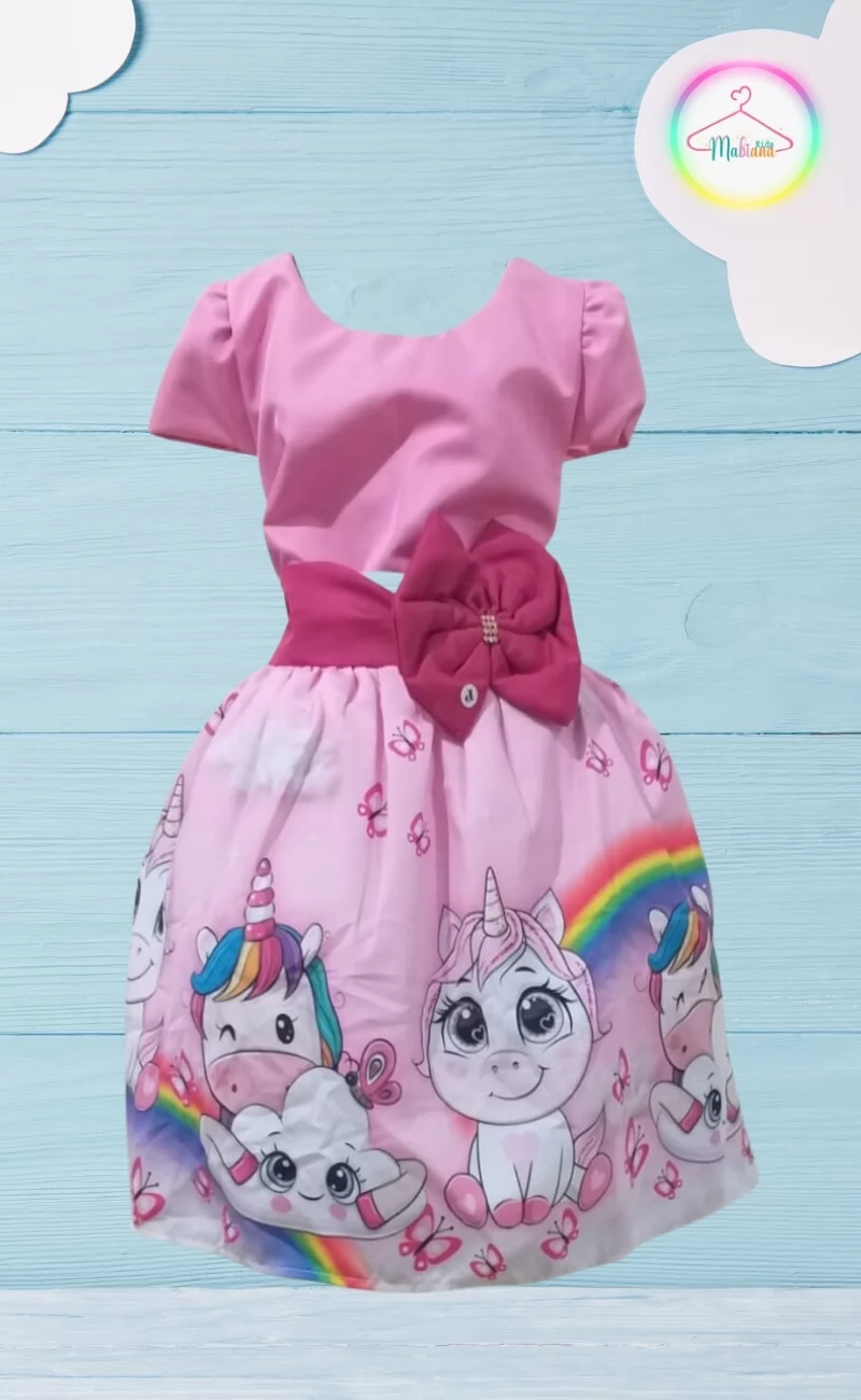 Vestido Infantil Unicórnio Amor – Encanto, Cores e Doçura para sua Pequena