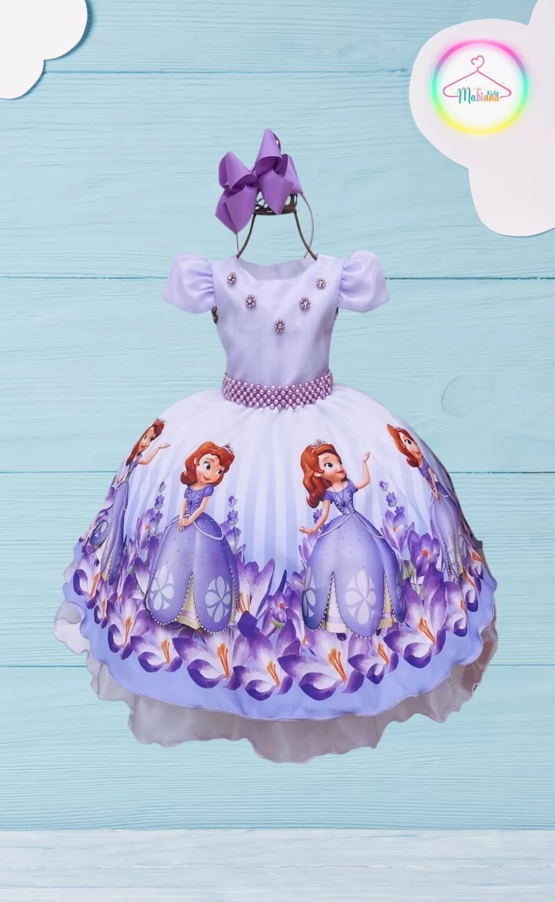 Vestido Luxinho Tema Princesa Sofia - Encanto Real para Meninas | Mabiana Kids