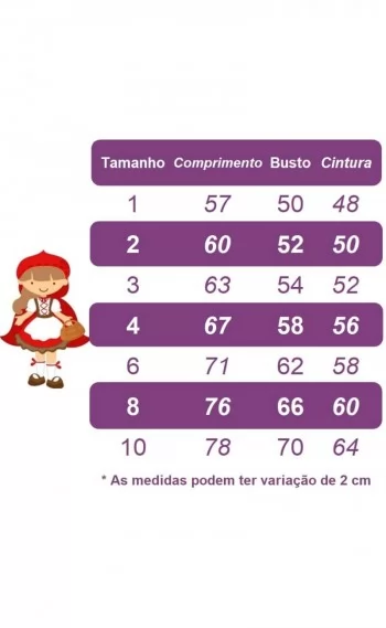 3 - Compare as medidas da Criança com as medidas da tabela que está na descrição, NÃO compre pela idade e sim pelas medidas.
