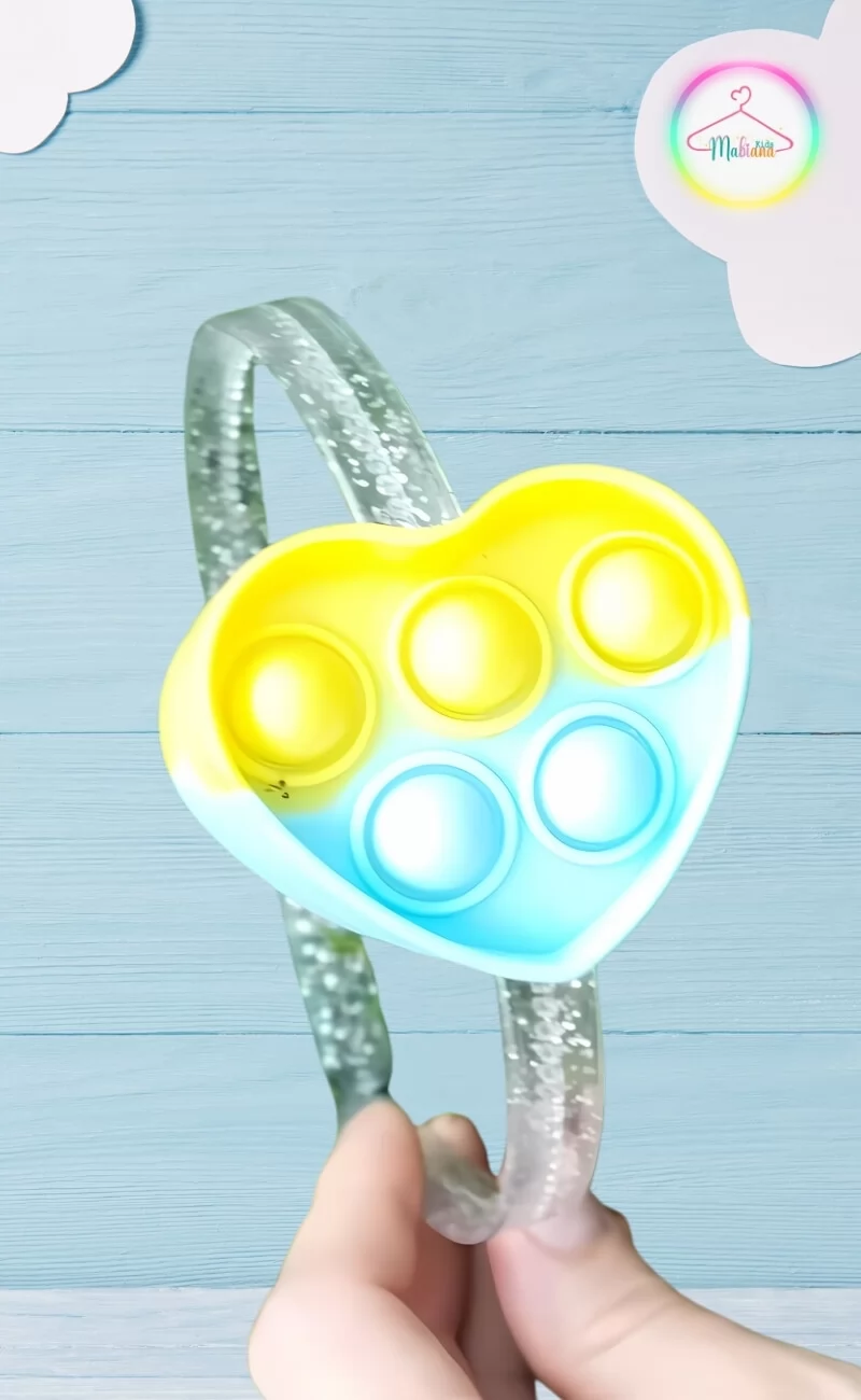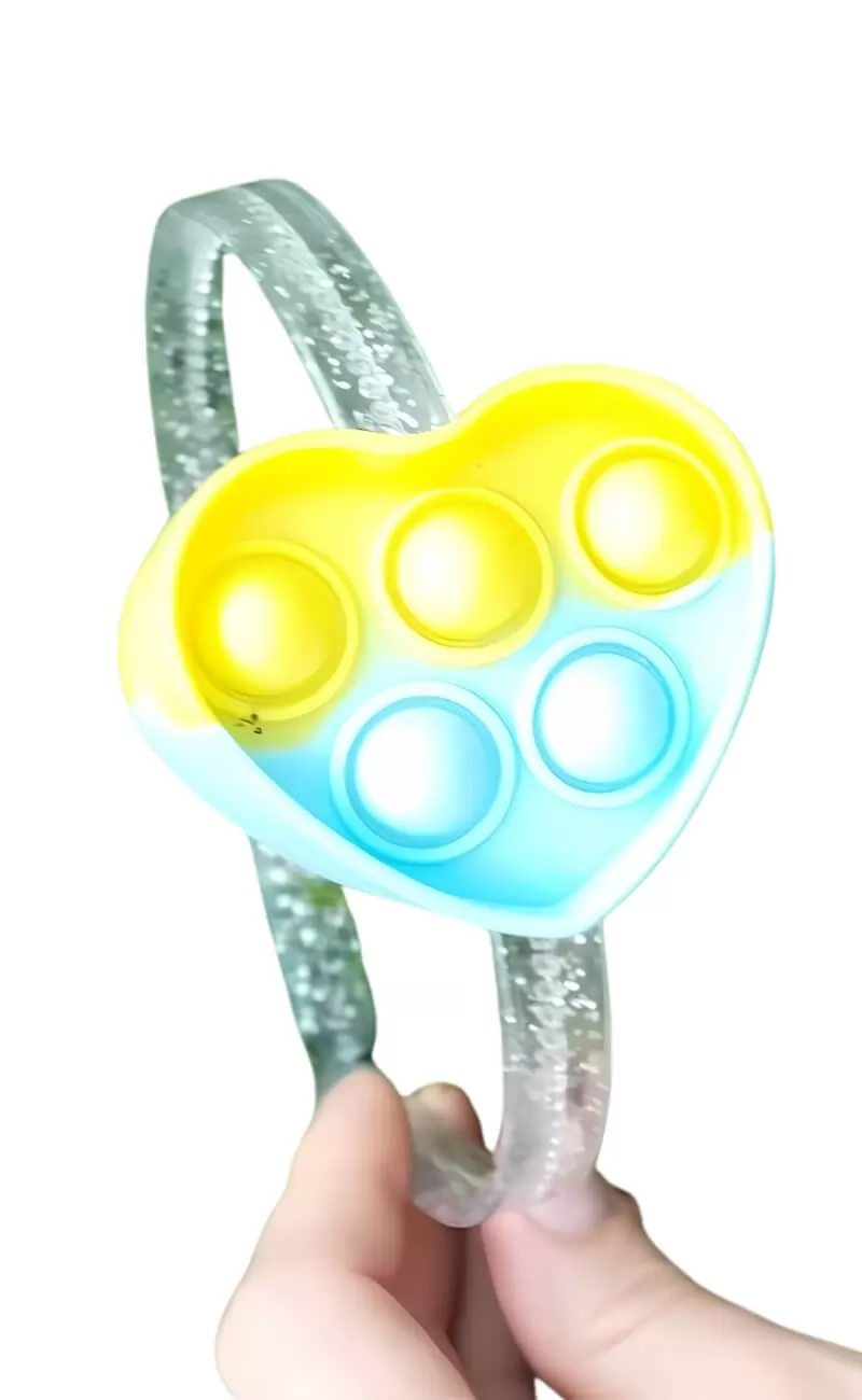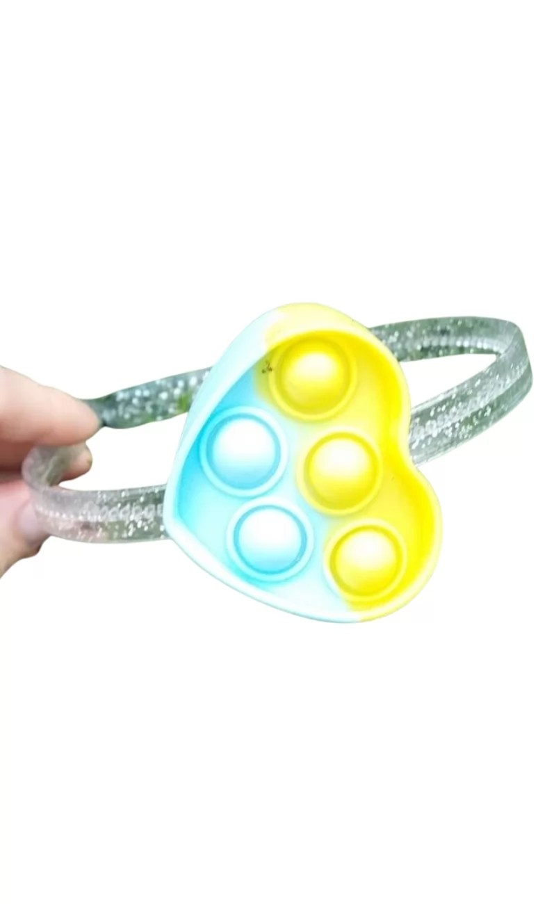 Linda Tiara (Arco) com dentes para sua pequena, o que é mais legal com um pequeno Pop It / Fidget Toy, todo colorido, além de ficar linda com um arquinho, tem um pequeno pop it para brincar.
