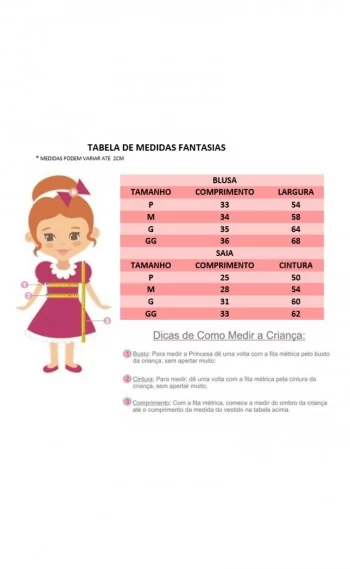 Tabela de Medidas: