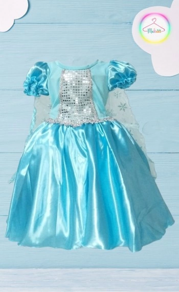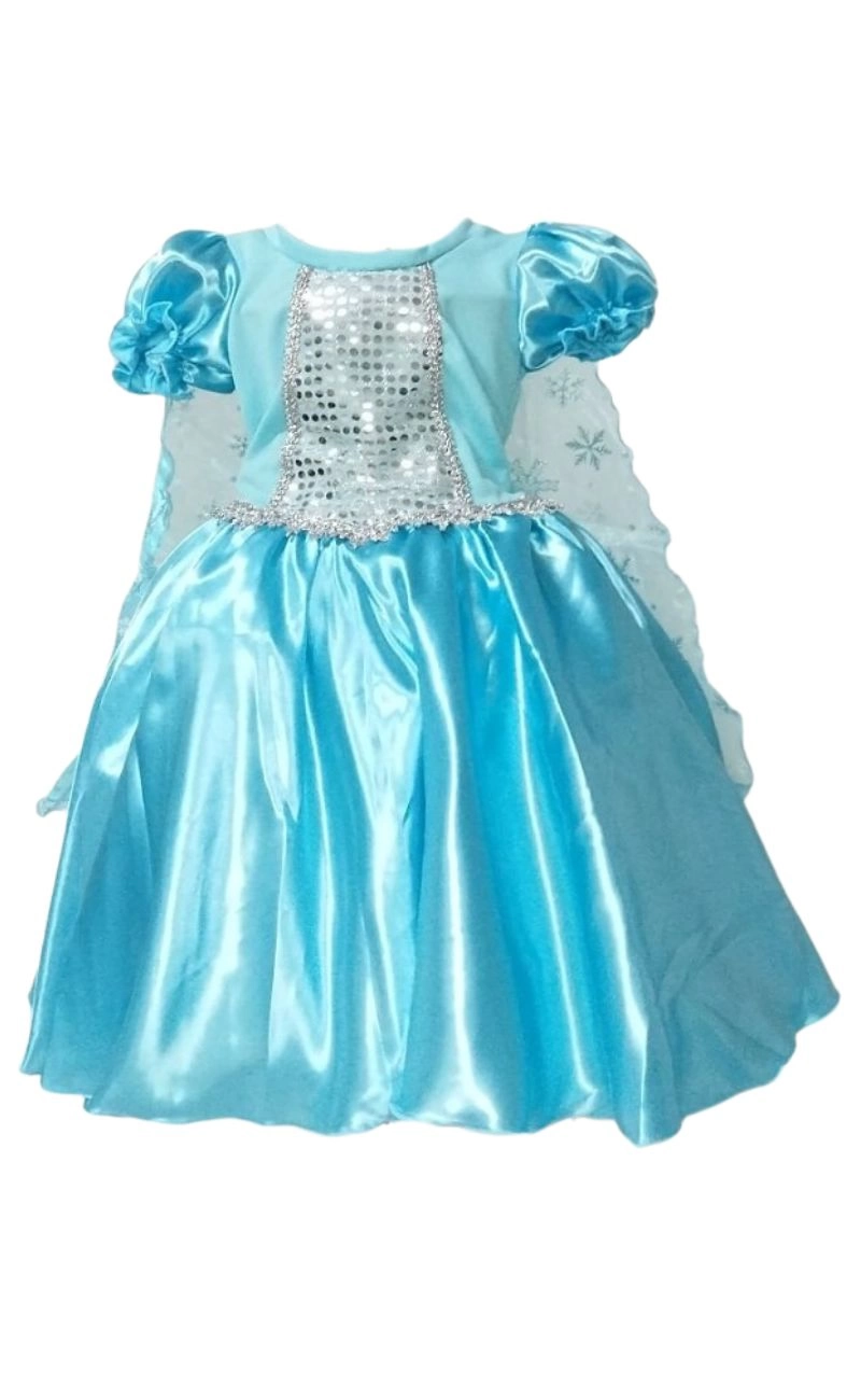 Vestido Fantasia Luxo Princesa Azul Festa com Capa Infantil