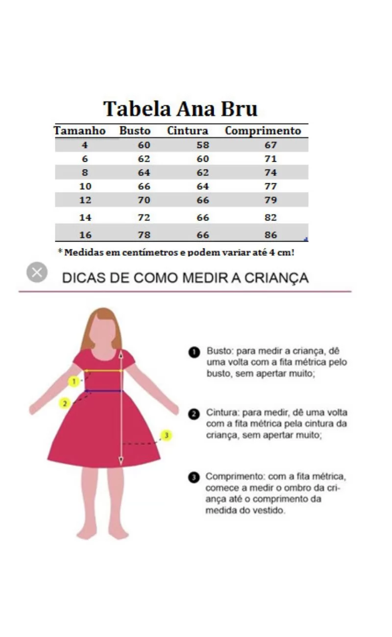 3 - Compare as medidas da Criança com as medidas da tabela que está na descrição, NÃO compre pela idade e sim pelas medidas.